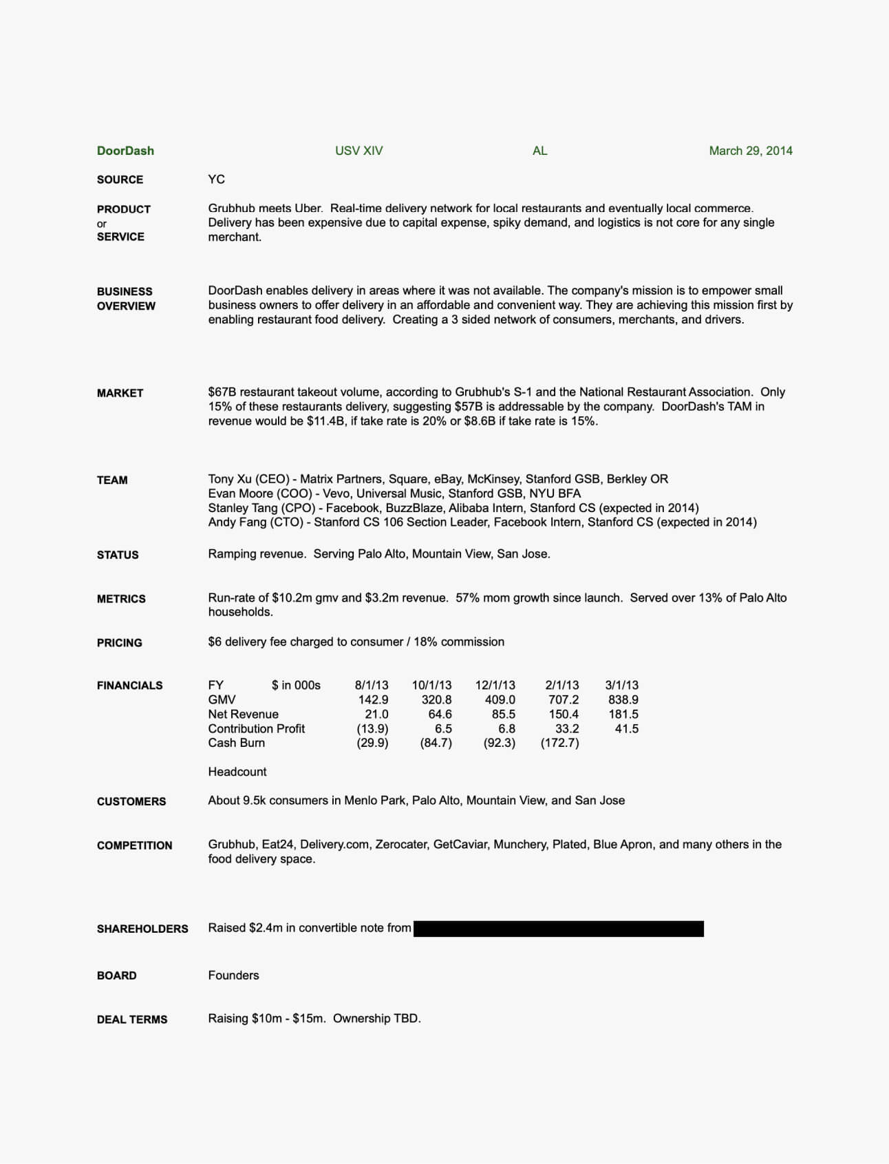 Alfred Lin: We decided to pass on the seed because we weren’t sure whether DoorDash would be a mainstream service or whether it was only a service for college students financed by their parents.