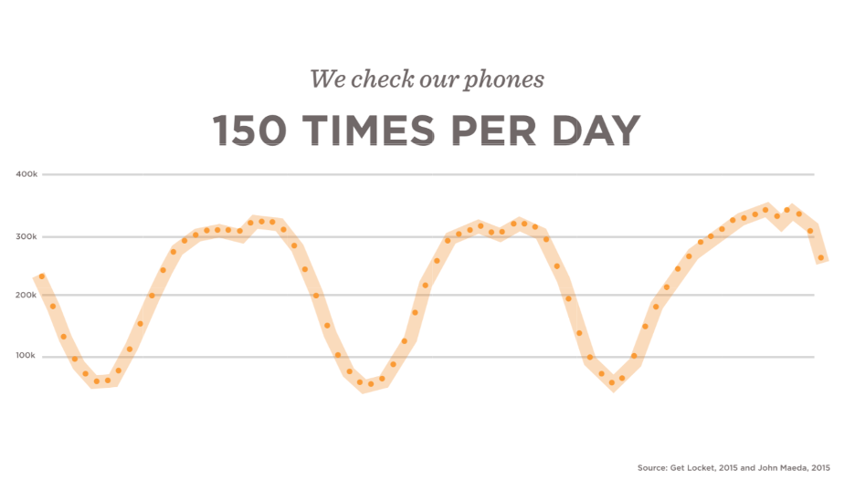 In his Design in Tech Report for 2015, John Maeda revealed that people in the US check their phones about 150 times a day.