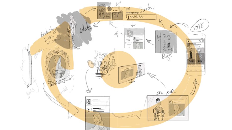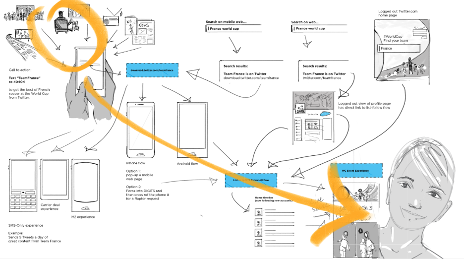 Halfway between a storyboard and a treasure map, it bundles the value and functional flow of your product with the delight people might feel at each step in your product. It sketches the UX flow without locking it down, and it delivers the gist of an idea and the emotional gestalt without prematurely belaboring the details.